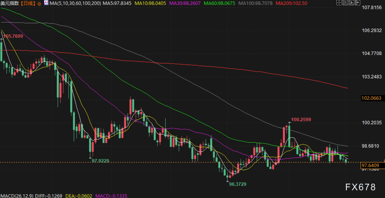 美元指数跌0.17% ,最低至至97.52,为7月28日以来最低水平。投资者将重点关注周五的美国非农就业报告,在此之前还有职位空缺和民间部门就业数据。