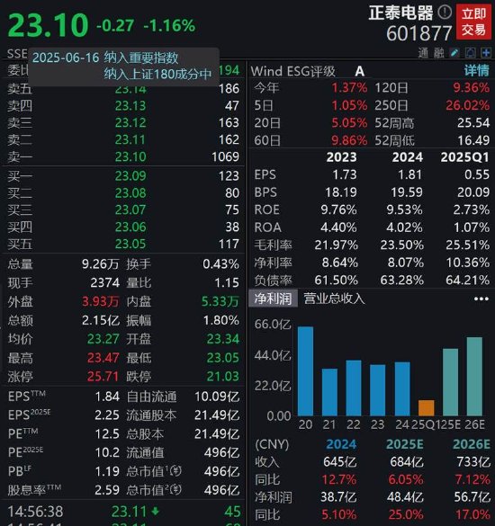 需要指出的是,正泰安能业绩贡献占了正泰电器业绩的半壁江山。2024年年报显示,正泰电器实现营业收入645.19亿元,同期正泰安能收入为318.26亿元,收入占比为49.33%;正泰电器实现归属于上市公司股东的净利润38.74亿元,同期正泰安能为28.61亿元,占母公司之比为73.85%。